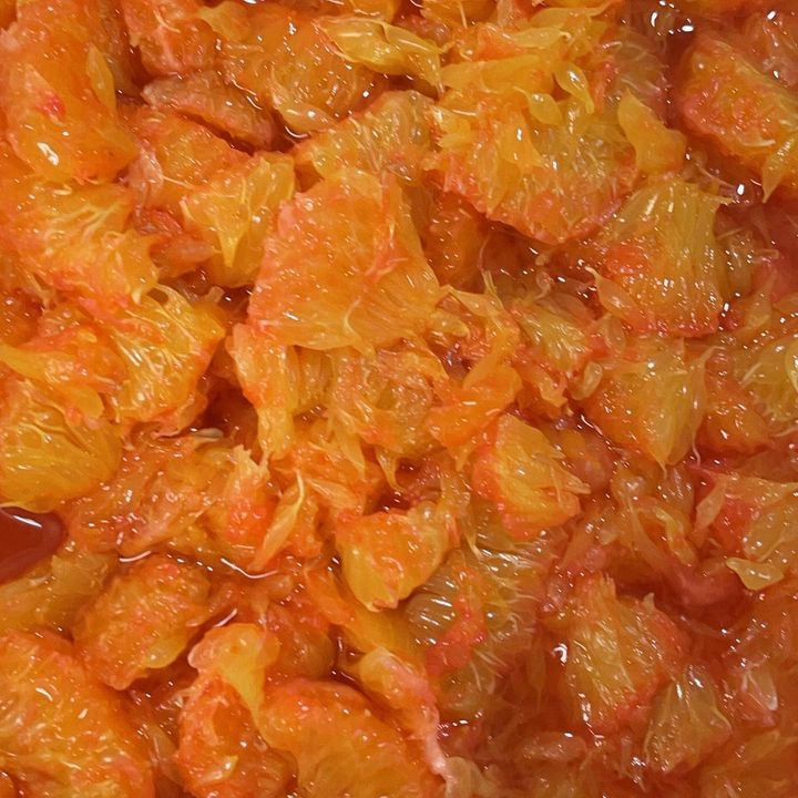 「はっさく」をカンパリでマリネしました。ブッラータチーズにたっぷり添えてお出しします。