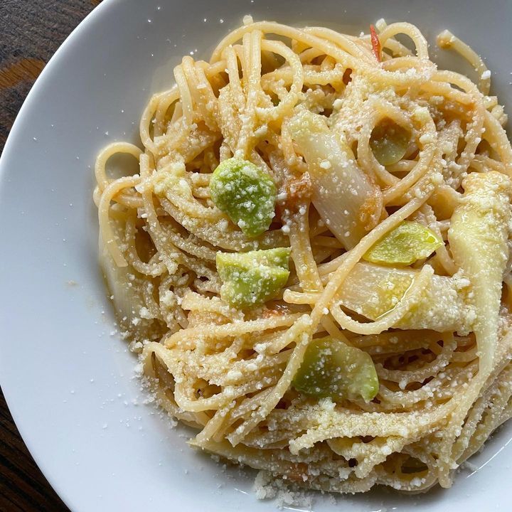 イタリア産ホワイトアスパラガス、そら豆、フレッシュトマト、アーリオオーリオ、ペコリーノロマーノ