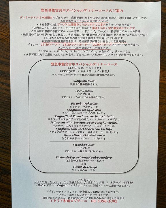 2枚目の写真、緊急事態宣言中スペシャルディナーコースやってます。