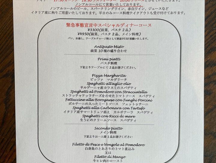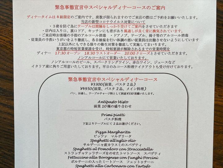 2枚目の写真、緊急事態宣言中スペシャルディナーコース、あと3日です。